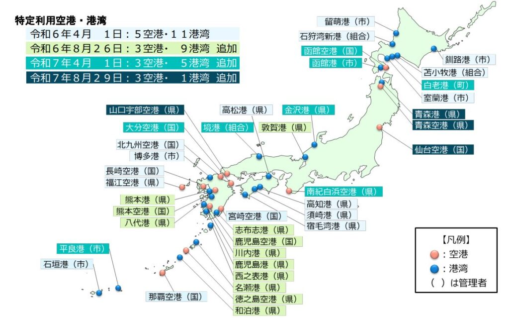 2026年3月時点の特定利用空港・港湾一覧(出典:内閣官房資料)